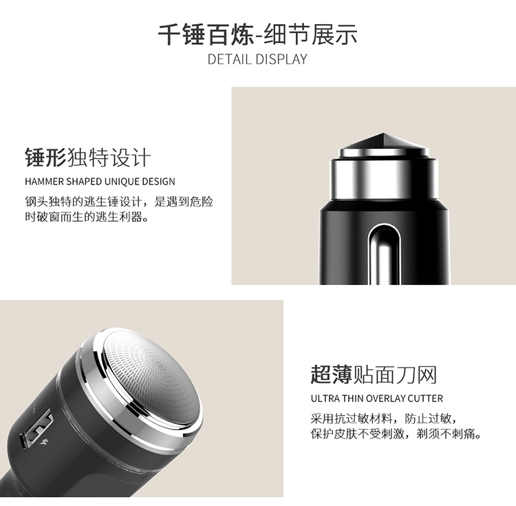 产品展示 > 智能车充> > 车充剃须刀安全锤